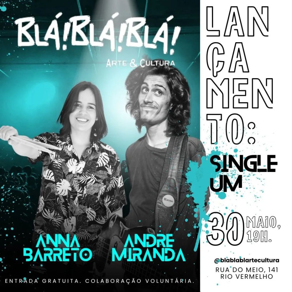 André Miranda e Anna Barreto se apresentam no Blá! Blá! Blá!, na quinta (30/05), às 19h. O evento ocorre para o lançamento do single Um.