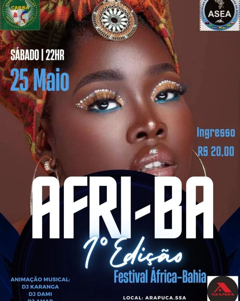 Neste sábado (25/05), a partir das 22h, o ARAPUCA apresenta A Noite AFRI-BA, que marca o encerramento da Primeira Edição do Festival ÁFRICA-BAHIA, evento organizado pelos/as estudantes africanos/as e residentes em Salvador em colaboração com ASEA.