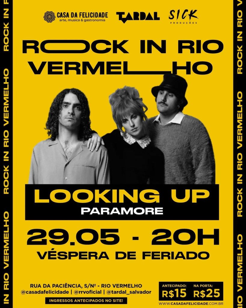 A banda Looking Up, na quarta (29/05), fará um tributo a banda de pop-punk Paramore. O evento ocorrerá às 20h na Casa da Felicidade, localizada na Rua da Paciência, Rio Vermelho.