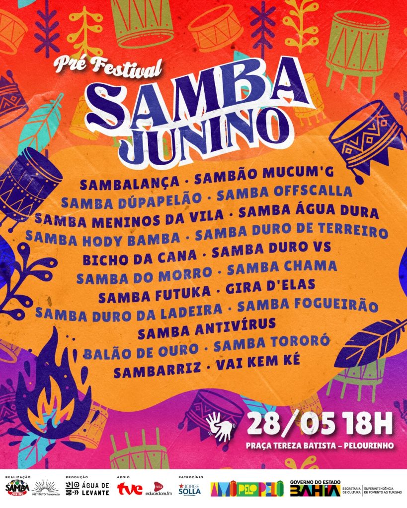 O evento contará com apresentações de diversos grupos de Samba Junino, que compõem a Liga do Samba Junino, criada em 2011, e que conta com 32 grupos, atualmente, oriundos de bairros do centro antigo e periféricos de Salvador, como Fazenda Garcia, Saramandaia, Engenho Velho de Brotas, Uruguay, Canabrava, Federação, Roça da Sabina, Vale das Pedrinhas, Santo Antônio Além do Carmo, Barris, Tororó e Vasco da Gama.