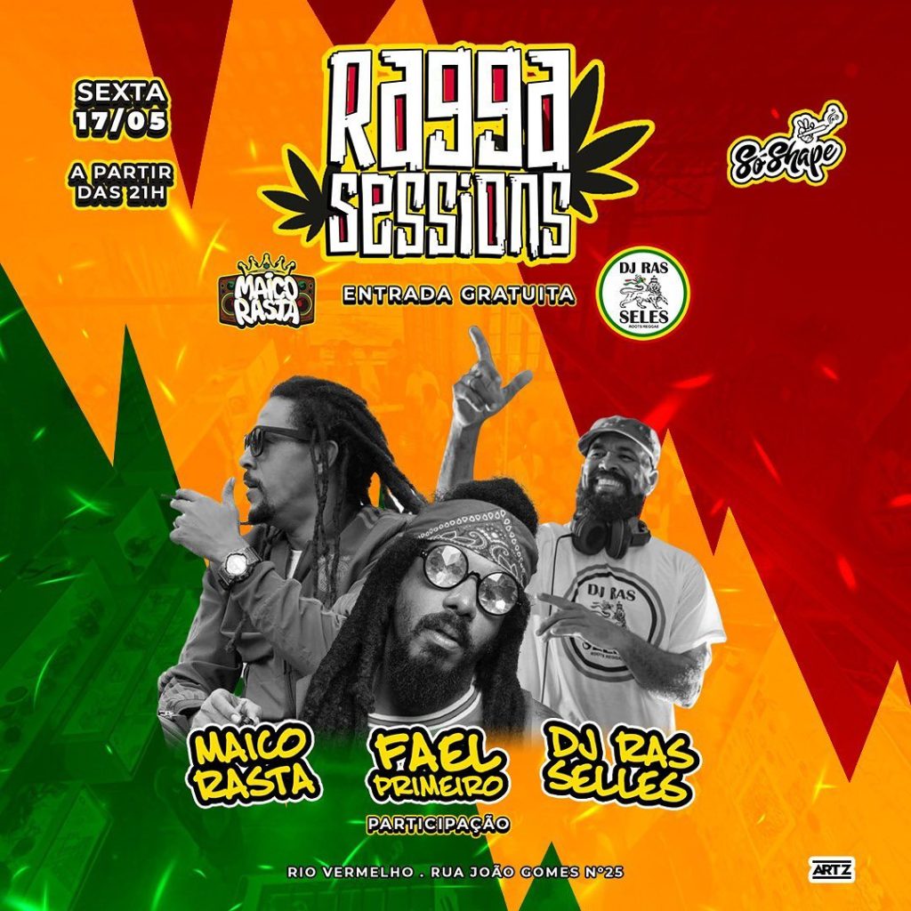 Nesta sexta, 17 de maio, tem Ragga Sessions, na Só Shape tabacaria, no Rio Vermelho, com encontro de Dj Ras Seles, Maico Rasta e a participação de Fael 1º, um dos repercussores da cena sound system na Bahia, com sua performance e voz inconfundível. A entrada é gratuita.