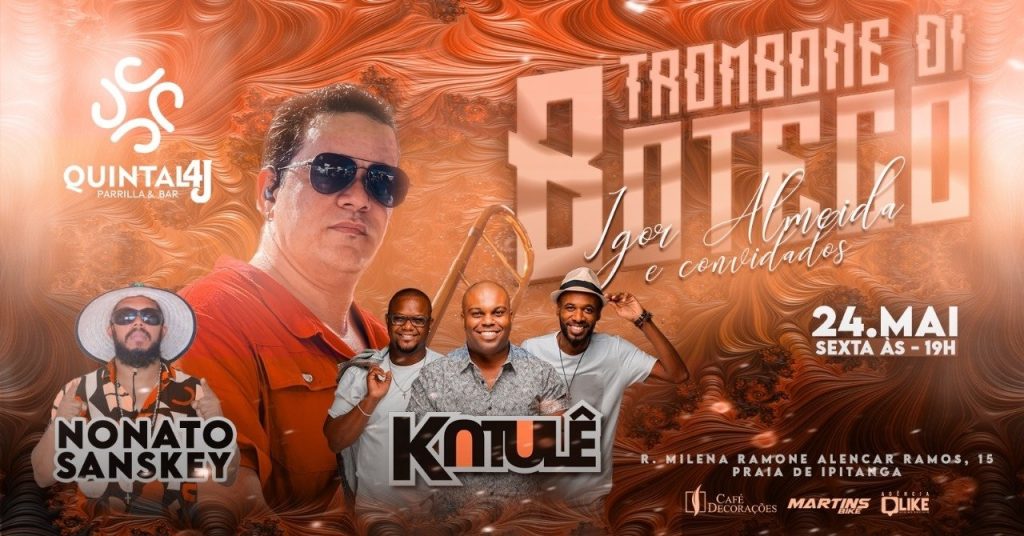 No dia 24 de maio, noQuintal 4J, em Ipitanga, o Trombone Di Boteco receber o expoente do samba junino na Bahia, Nonato Sanskey, juntamente com o Grupo Katule, trazendo o melhor do partido alto para fazer todo mundo dançar.