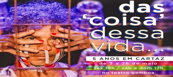 Em maio de 2019, estreava em Salvador, no palco do Teatro Gamboa, o solo “Das ‘coisa’ dessa vida…”. Cinco anos depois, tendo percorrido uma trajetória de importante impacto, o espetáculo retorna ao mesmo local para celebrar este marco de sucesso, em uma temporada de 12 apresentações, de 3 a 26 de maio, sextas às 19h e sábados e domingos às 17h.