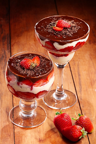Em uma panela, coloque o leite condensado, dois cremes de leite e leve ao fogo médio. Mexa até que forme um brigadeiro cremoso, reserve e deixe esfriar. Em um recipiente, derreta o chocolate no micro-ondas de 30 em 30 segundos e acrescente o terceiro creme de leite. Misture bem até que fique homogêneo. Com o brigadeiro frio, monte a sobremesa em taças ou travessa com a ordem de brigadeiro, morangos e por último a ganache de chocolate. Decore com raspas de chocolate e morango e deixe gelar.