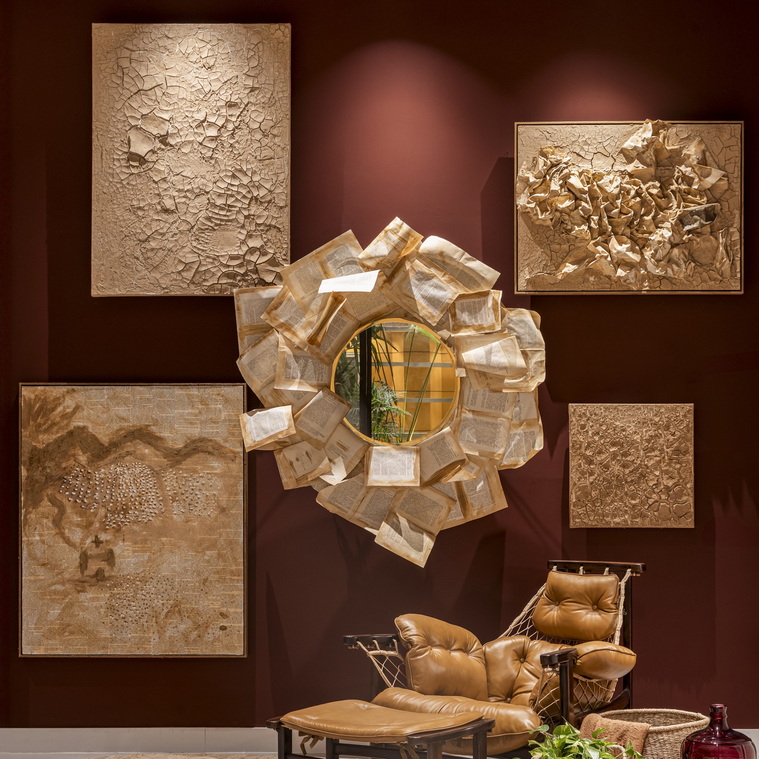 Localizado na entrada da mostra, o ambiente da arquiteta Daniela Funari representa a integração entre o litoral e o interior do Brasil. O tom de areia das praias colore o trecho mais claro e faz contraste com o bordô da terra, que escurece conforme se afasta do oceano. Em 115 m², bilheteria, chapelaria e um lounge de contemplação exibem uma seleção de mobiliário nacional produzido com madeiras e pedras nobres, como as telas de Annike Limborço. Outro destaque do ambiente é o tapete “Coragem”, de autoria de Rapha Preto, que reutiliza fibras de carpetes antigos e redes de pesca recolhidas do mar.