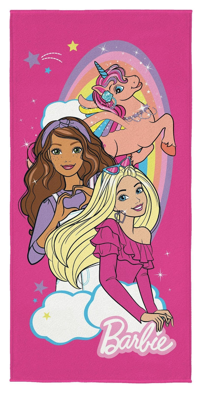 A toalha felpuda da coleção Barbie estampa em um fundo rosa, a incrível e estilosa personagem e seu cãozinho. Seu tecido apresenta a qualidade da felpa que não desfia, além de possuir uma ótima absorção e se tornar mais macia a cada lavagem. Traz como diferencial um tamanho maior com ainda mais praticidade na hora de se secar.