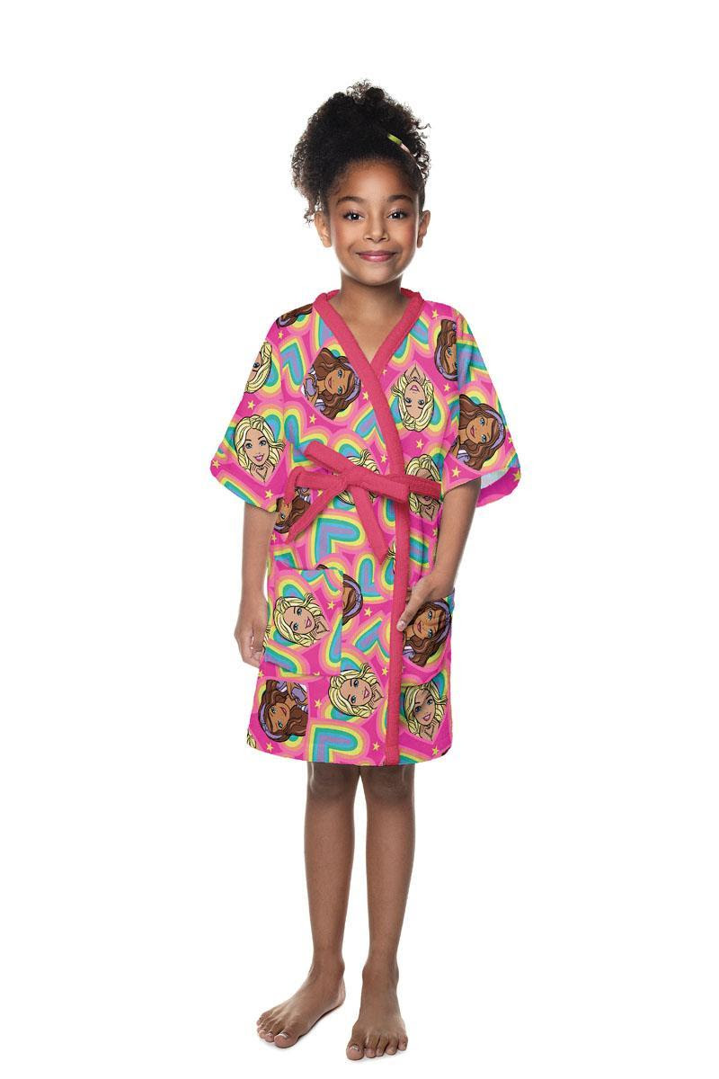 O roupão aveludado da coleção Barbie estampa todo o charme e diversão das estilosas bonecas. Seu tecido aveludado é super macio, aconchegante e apresenta o verso felpudo para uma absorção ainda melhor.