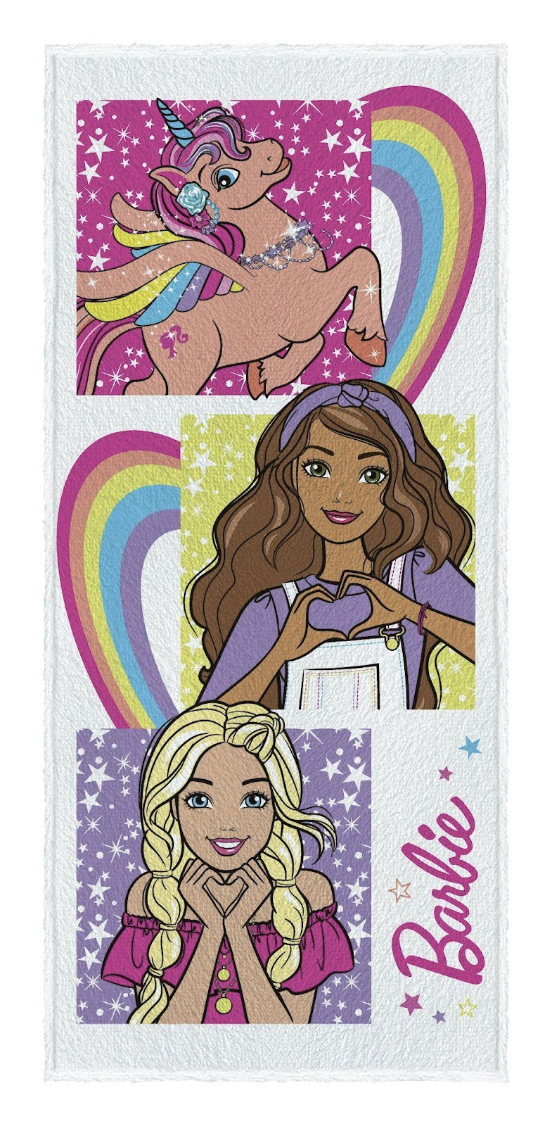 A toalha felpuda da coleção Barbie traz cores, alegria e a autenticidade das versões da boneca. Seu tecido apresenta a exclusiva qualidade da felpa que não desfia e possui uma ótima absorção e durabilidade.