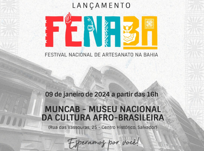 As artesãs e artesãos de diversas regiões do país vão se encontrar no Festival Nacional de Artesanato na Bahia – FENABA, que será lançado nesta terça-feira (09/01), a partir das 16h (cerimônia às 18h), no Museu Nacional de Cultura Afro-Brasileira – MUNCAB, na Rua das Vassouras, 25, no Centro Histórico, em Salvador. Com a presença de convidados, autoridades e a imprensa, a cerimônia de lançamento contará com a participação de DJ, apresentação do Festival e coquetel.