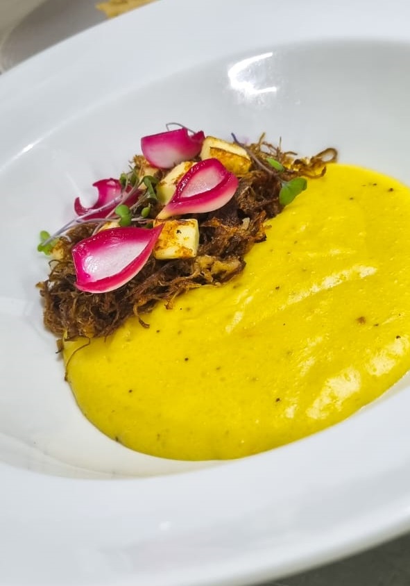 Principais: Opção 1: Ragu de Cupim + purê de queijos + farofa de pão de alho Opção 2: Arroz Tierra y Mar (arroz + polvo + calabresa de maragojipe) + aioli de limão Opção 3: Couve-Flor assada com páprica defumada + creme de grão de bico